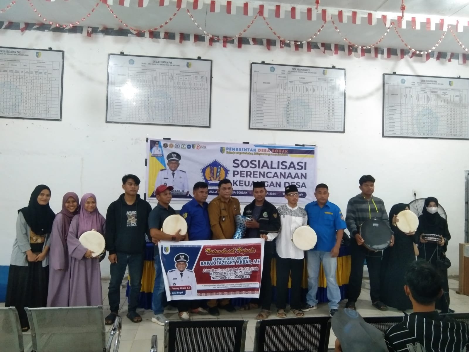 BATU BARA, 31 Desember 2024 – Dalam upaya memperkuat kegiatan keagamaan dan kebudayaan, Pemerintah Desa Bogak Kecamatan Tanjung Tiram Kabupaten Batu Bara yang dipimpin oleh Fazzary Akbar SE selaku kepala Desa Bogak bersama elemen masyarakat menyerahkan satu set alat hadroh kepada Majelis Sholawatan Nuurun Nabi. Acara berlangsung khidmat di Aula Balai Desa Bogak dan dihadiri berbagai tokoh masyarakat serta pemuda-pemudi Desa Bogak.