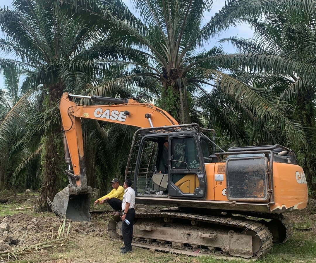 Dalam pelaksanaannya, proses penumbangan dan pembersihan lahan dilakukan menggunakan satu unit alat berat berupa beko. Penggunaan alat berat ini bertujuan untuk mempercepat proses pengerjaan, sekaligus memastikan pembersihan lahan dilakukan secara maksimal dan efisien tanpa mengabaikan faktor keselamatan kerja.