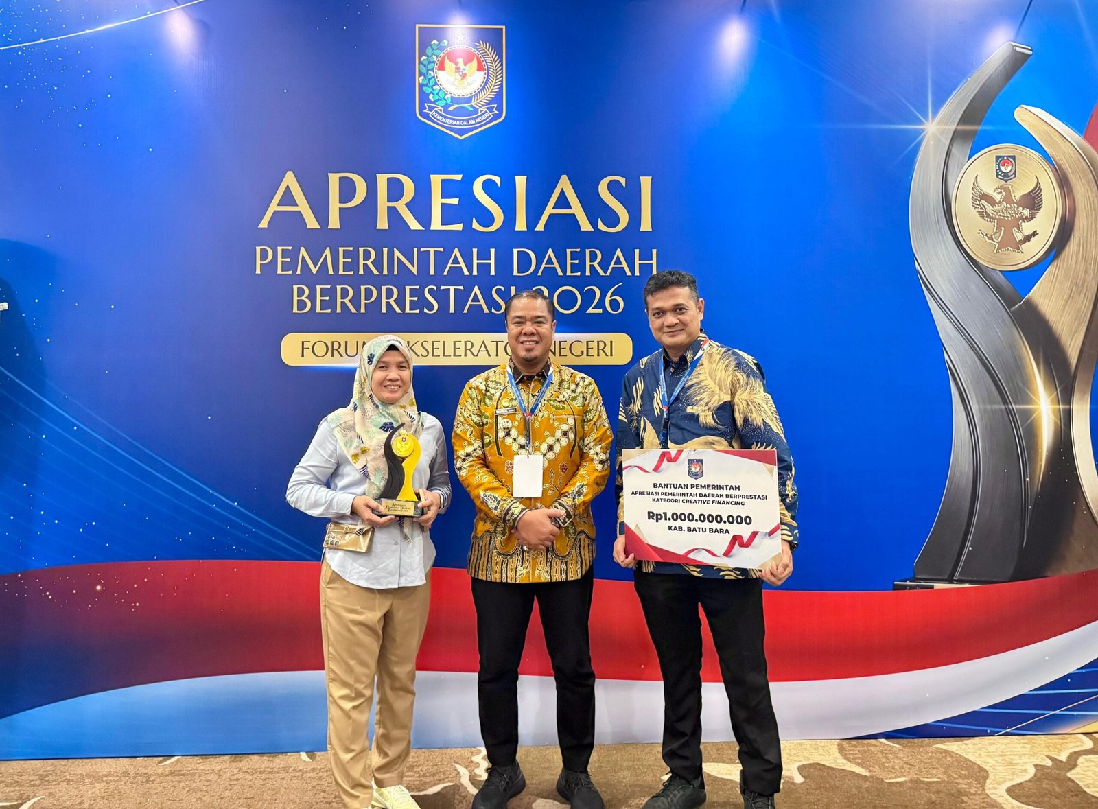 PALEMBANG – Pemerintah Kabupaten Batu Bara kembali menorehkan prestasi membanggakan di tingkat nasional. Pada ajang Apresiasi Pemerintah Daerah Berprestasi 2026, daerah ini berhasil meraih Juara III Kategori Creative Financing. Penghargaan ini menjadi bukti nyata keberhasilan Batu Bara dalam mengoptimalkan sumber daya dan menghadirkan inovasi pembiayaan pembangunan yang efektif.